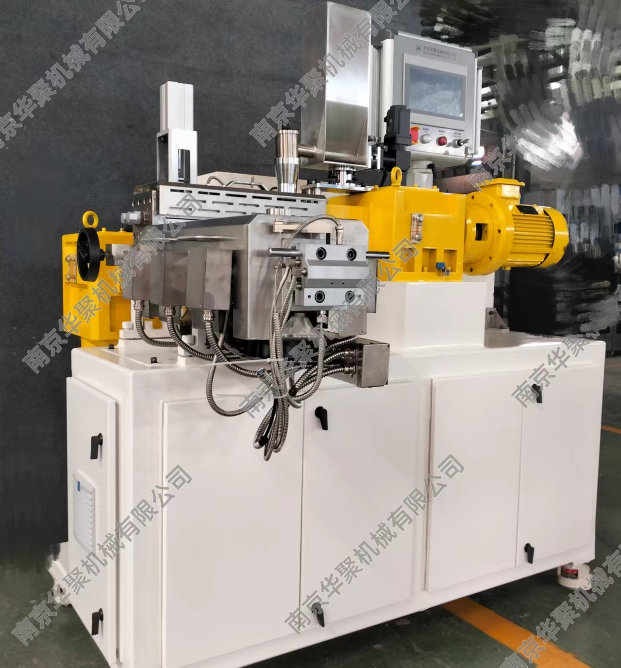 1、占地面積小,主機(jī)長(zhǎng)寬高為1600X1350X1650mm,帶有移動(dòng)腳輪。 2、集成連續(xù)密煉與雙螺桿的優(yōu)勢(shì)特點(diǎn),連續(xù)式擠出,方便各種研發(fā)測(cè)試使用。 3、能耗低,裝機(jī)裝機(jī)功率22KW,實(shí)際操作功耗更低,類似一臺(tái)中央空調(diào)功率。 4、產(chǎn)量范圍1-10Kg/h,方便少量物料測(cè)試,伺服電機(jī)喂料驅(qū)動(dòng)更穩(wěn)定精確。 5、一體化設(shè)計(jì),電控冷卻系統(tǒng)全部集成,無(wú)需額外安裝,接電即用。 6、連續(xù)密煉機(jī)可翻轉(zhuǎn)腔體和雙螺桿快開機(jī)頭設(shè)計(jì),方便清理及檢查維護(hù)。 7、全系統(tǒng)安全連鎖,觸摸屏操作,多處安全停機(jī)保護(hù),使用更放心。 8、整機(jī)1噸,方便裝卸。